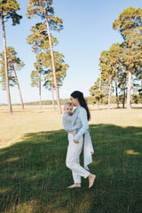 We recommend ironing the babywrap after washing. The fabric becomes nice and soft again and permanent wrinkling can be prevented. Since untreated cotton shrinks a bit the first time it is washed, our wraps are approx. 7% longer than stated. This ensures that the sling is the right length after washing.